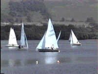 Saturday saw 12 boats out on the lake with some close racing throughout the fleet. A few close calls and a slight collision on the start line all added to the excitement. The winds were being typical Bass. At the back of the fleet, at one point it looked as if Ginge Hodgkins was going to be beaten by his youngest son, Richard, crewed by his brother Philip. Fortunately a change in the wind meant that Ginge came in about a minute before his sons crossed the line. Watch out Dad!